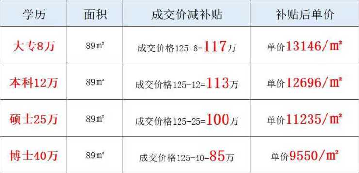 额外优惠条件大专8万;本科12万;硕士25万;博士40万(非全日制均可)