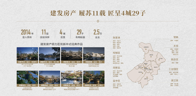 建发房产2014年首入苏州,履苏11载,匠呈4城29子,倾力匠筑新中式经典作品。