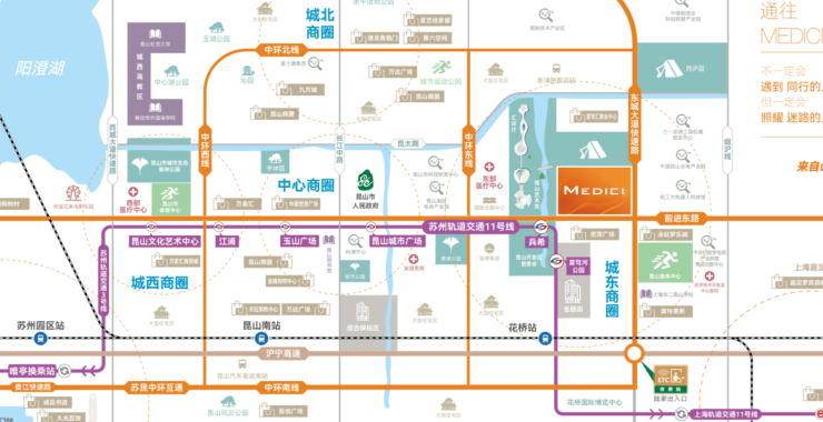 紧邻中环东线、前进东路、东城大道等城市主干道,自驾15min至昆山南站,30min至苏州园区核心区。