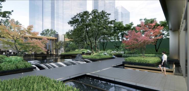 玖礼檀樾以"都市东方隐奢"为设计理念,借鉴无锡寄畅园造景手法,打造"两轴四进五园"现代奢雅园林景观。外立面采用现代公建化风格,配置金属铝板+玻璃组合,香槟色线条,营造低调奢华的现代建筑气质