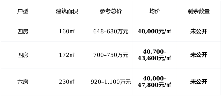 剩余房源当前无官方公布数量但售楼处反馈“热销中,户型稀缺”160㎡户型为市场主力,172㎡以上户型成交周期短