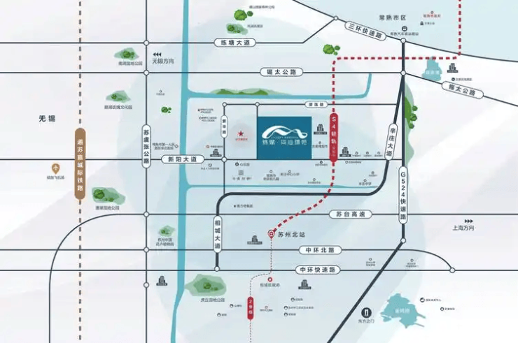 规划中的苏州S4轨交将在辛庄设站,距项目约2.2公里,未来可无缝接驳地铁2号线苏州高铁北站,直通苏州城区。