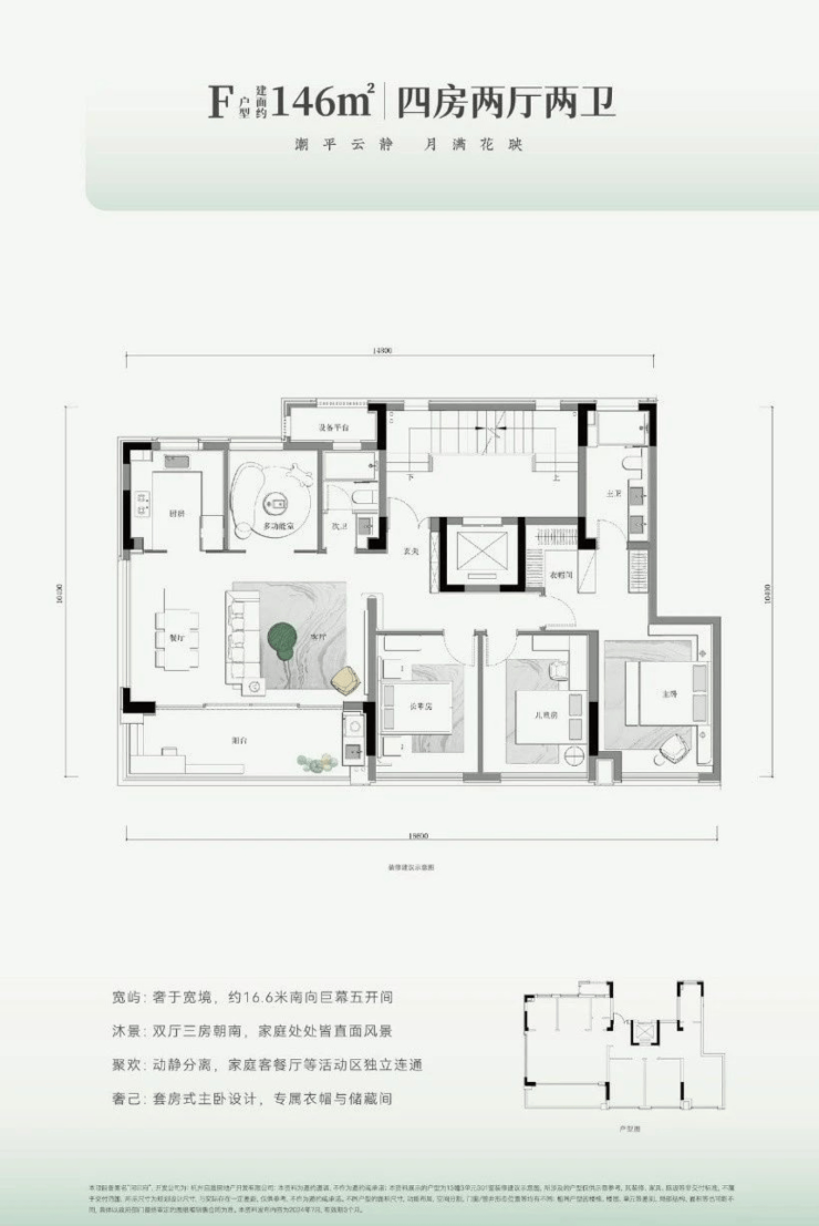 叠墅产品:建面约136–178㎡,总价400万起,主力户型为四居,涵盖上叠、中叠、下叠三种类型:
