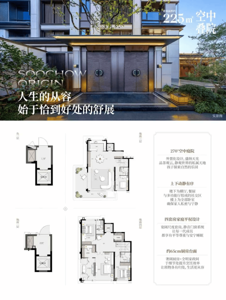 产品类型:建面约210-255㎡低密叠墅,建面约150-180㎡臻境洋房