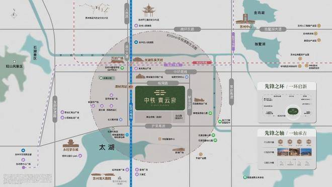 ◎发展之环:中环东接园区产经引擎,西融狮山创新脉络,南承太湖新城生态蓝图,北启高铁枢纽经济,便捷通达苏州多中心,启幕现代化城市发展新篇章。