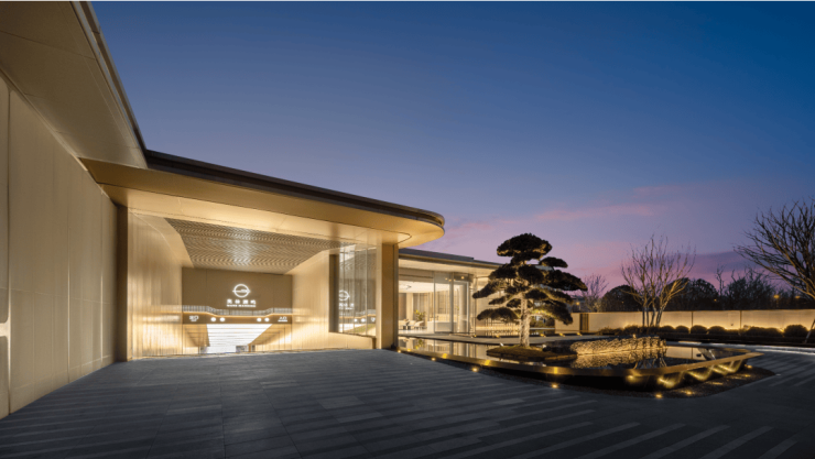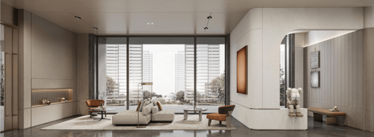 无锡奥体潮鸣项目位于经开区干城路与贡湖大道东北侧地块,紧挨奥体中心,直视太湖一线湖景。整体项目的总建设用地面积约10.77万㎡,用地性质为居住。总建筑面积32.05万㎡,其中地上20.52万㎡,地下11.54万㎡。建筑业态包含5/7F多层住宅及21~24F高层住宅,户型面积155~320㎡。该项目采用公建化外立面,造型奢华灵动,弧形线条及玻璃呼应奥体灵动造型,立面运用石材+铝板材料+大面落地玻璃,提升居住体验。