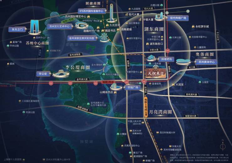 1.商业配套:背依斜塘老街时尚街区,紧邻邻里中心,向东约1km(一站地铁)可达奥体中心,向西约1.5km有邻瑞广场山姆超市,向北约2.5km是圆融时代广场、久光百货、IFS苏州国际金融中心。沿中新大道与金鸡湖隧道可直达苏州中心。周边商业氛围浓厚,大型超市众多,如必盛客超市(联丰广场店)直线距离273m,好的超市(联丰广场店)直线距离308m,联华超市(联丰广场店)直线距离317m。象屿天悦东方售楼处电话:4008529793