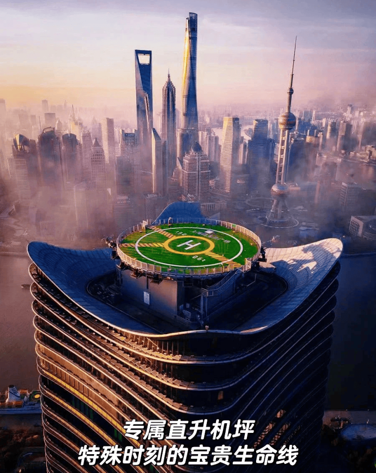 南边的塔楼顶部甚至设计了一座直升机停机坪,而这也是上海唯一的住宅停机坪。