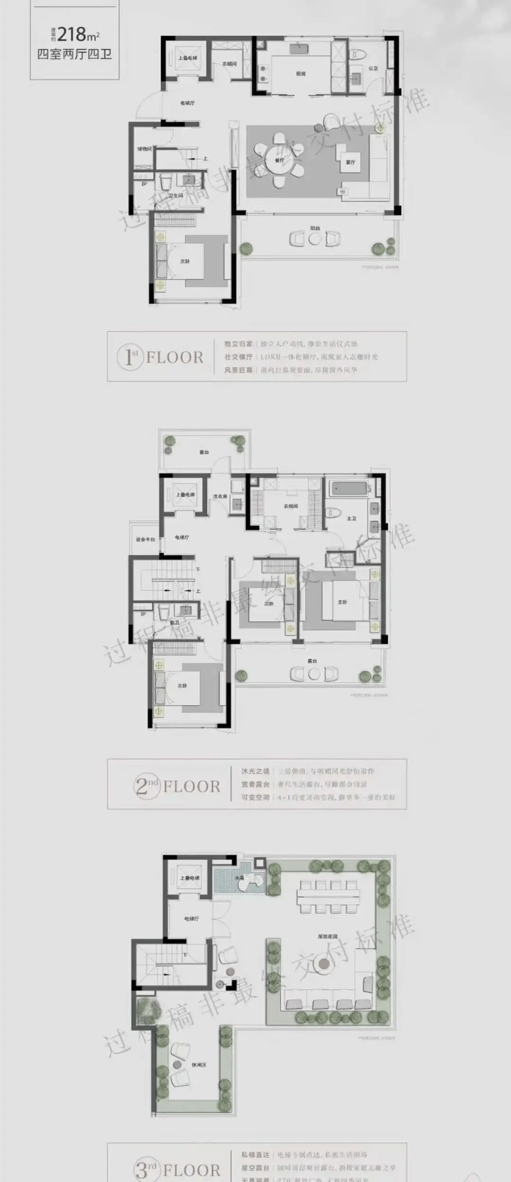 216㎡中叠:560万–590万(带40㎡露台+私梯)