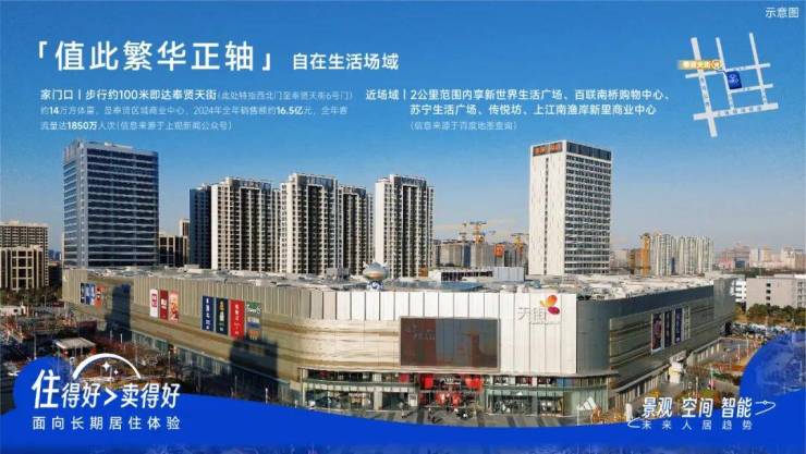 项目与约14万平方米的龙湖奉贤天街TOD综合体仅一路之隔,步行3分钟即可满足日常购物需求。该综合体引入IMAX影院、海底捞等300余个品牌。2公里范围内还有新世界生活广场、百联南桥购物中心等约50万㎡商业体量。