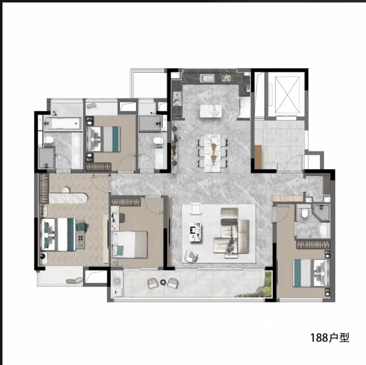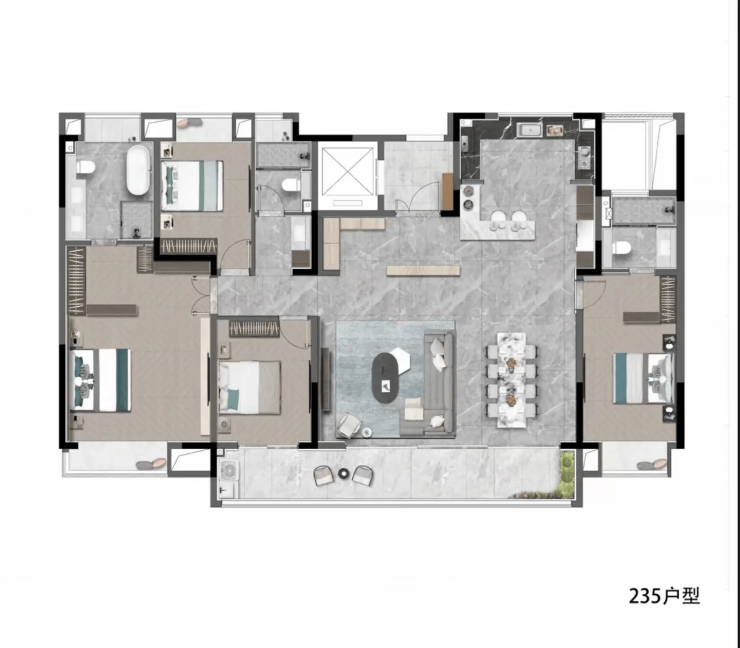 238㎡四房:纯粹四室格局,墅级宽境尺度,星级主卧套房。