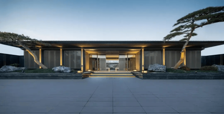 建筑美学:外立面以香槟金线条勾勒,大面积落地玻璃窗与传统阵列窗格相结合,展现现代建筑的简约时尚与东方文化的深厚底蕴。