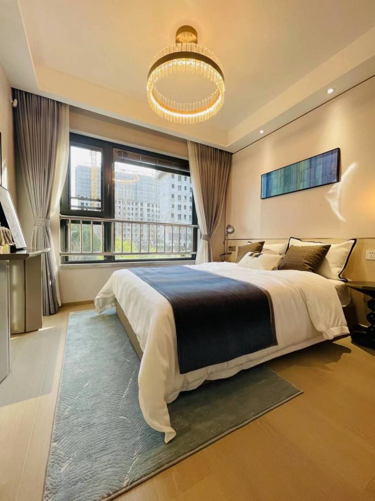 森兰海天名筑采用现代高端风格,外立面以米白色石材搭配深灰色金属线条,局部采用大面积玻璃幕墙,既彰显高端质感,又能最大化引入海天景观与阳光