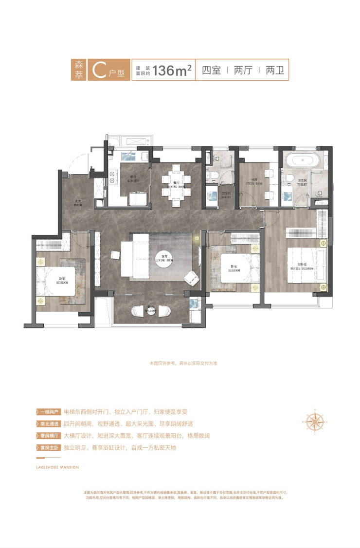 所有户型均采用"实用主义"设计理念,多开间朝南、南北通透,户型方正,空间利用率高
