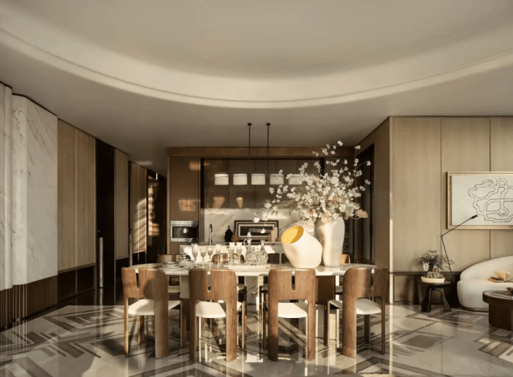 室内由CCD郑忠(“翡翠”系列)、琚宾等国际设计大师操刀,打造原木风、现代奢感等多元风格样板间