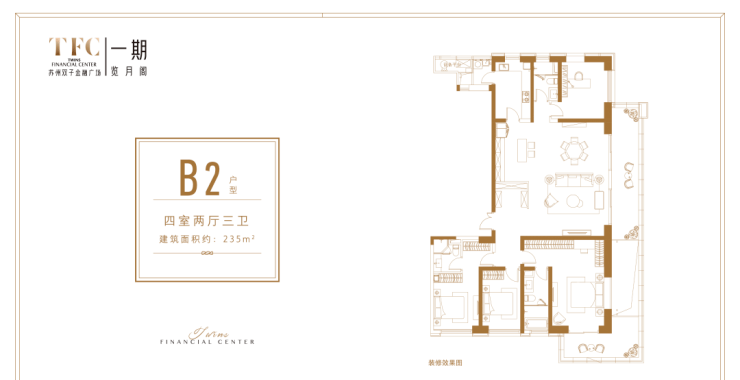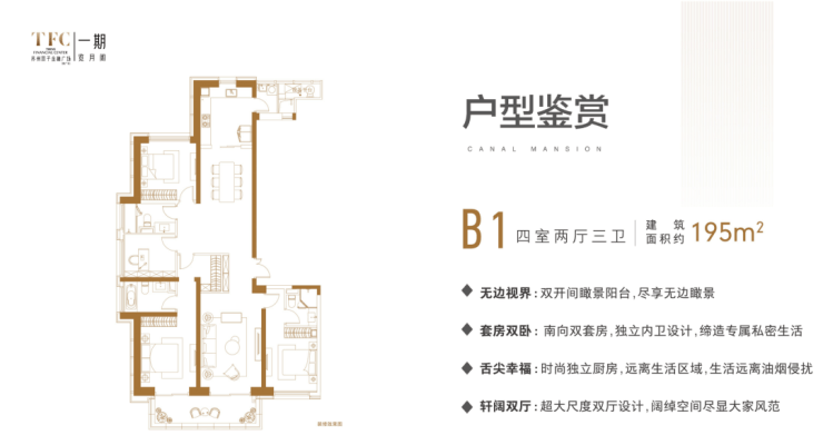 主力户型:105㎡(2居)、135㎡(3居)、155㎡-195㎡(4居)、235㎡(4+居)