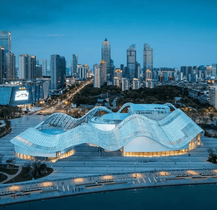建筑风格:现代简约风格,外立面采用铝板+玻璃幕墙组合