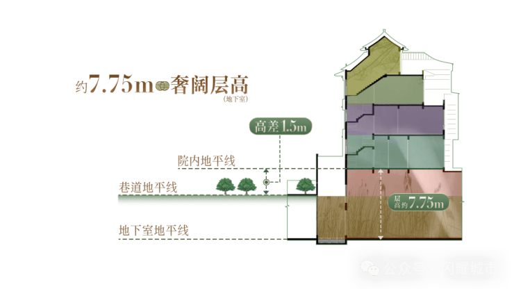 园林:由奥雅股份操刀,打造“一轴两园四坊八巷十景”江南胜境,引入镜像百年郭庄的水系布局,2700㎡下沉庭院为杭州唯一,非普通会所,而是文化社交场域。