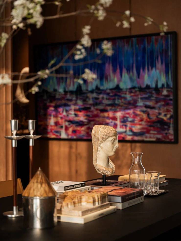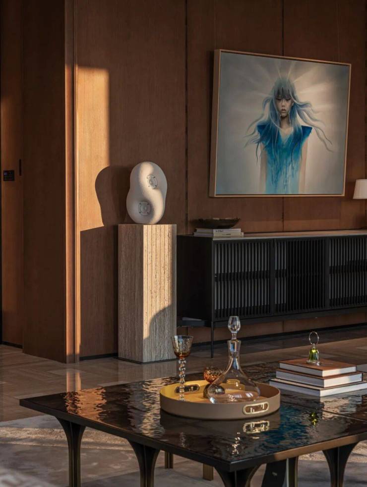 在更私密的家庭区域,艺术廊与家庭厅相连,走道成为展场。罗马的拱门与杭州的铜雕,都在讲述同一件事:真正高级的审美,懂得留白,懂得沉默,懂得一杯茶的时间里,无需证明证明。