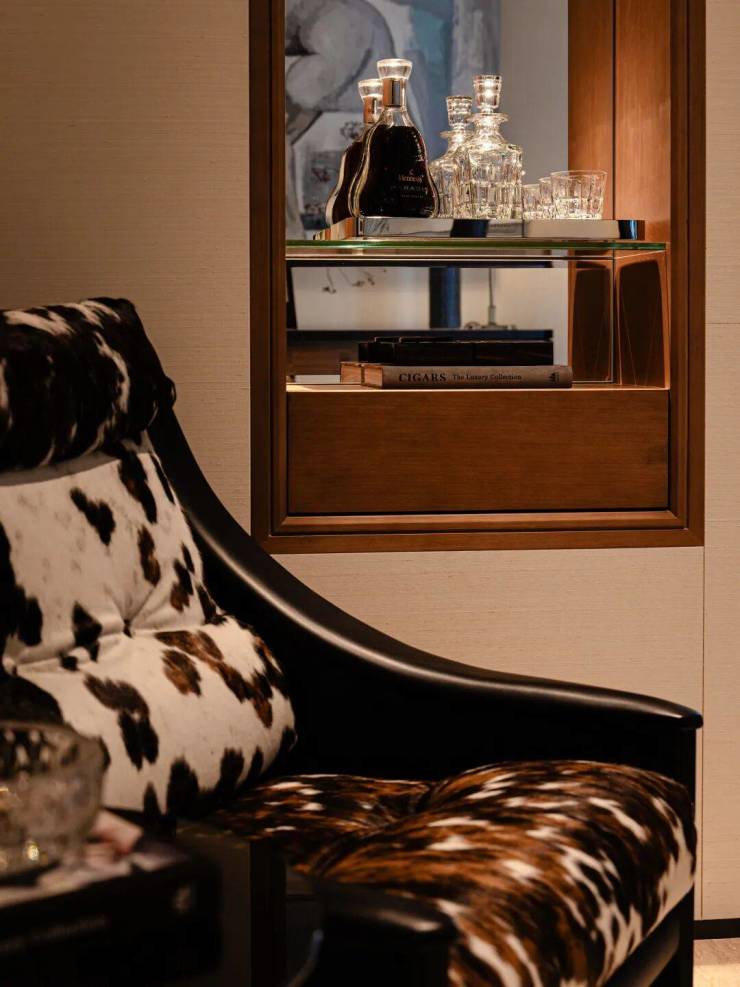 独处是一种主动而聪明的选择。在这里,皮质与醇香交织。 一本书,一支雪茄,便是一段完整的自我时光。门把手如同一件小型雕塑,每一次触碰都是与设计的对话。