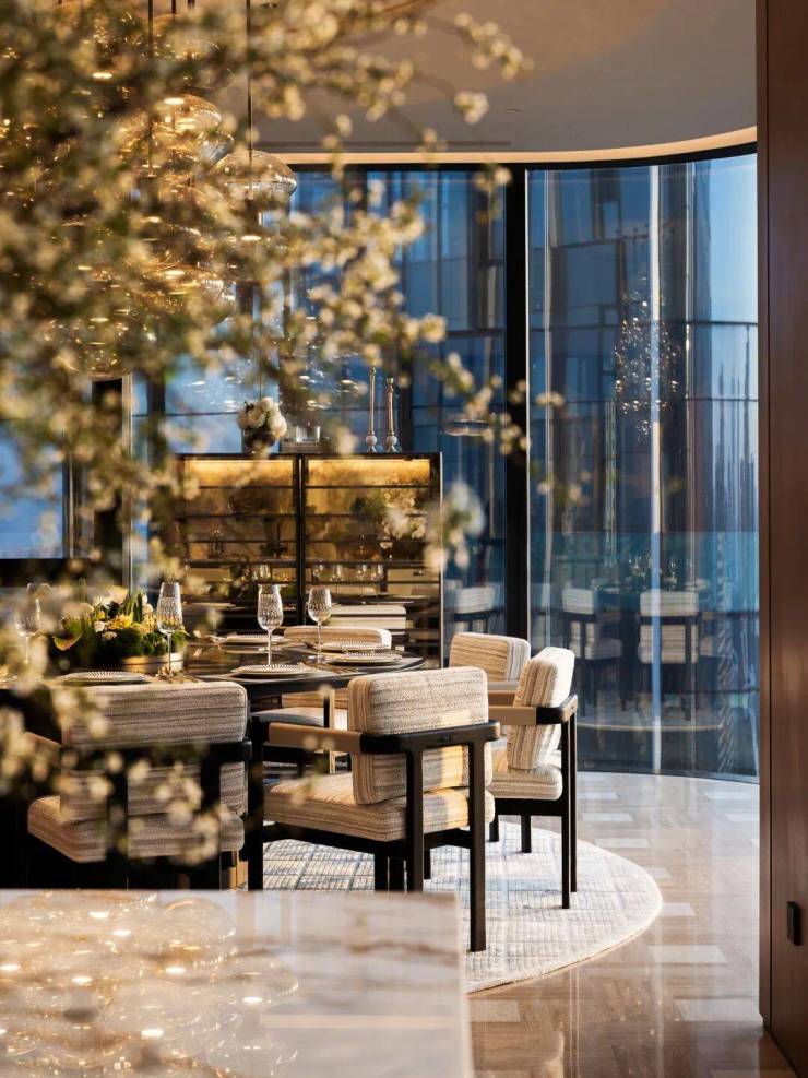 落地窗旁,一张圆桌,两把椅子。270°的景观视野是最好的背景。早餐、茶叙、轻声漫谈,光线、风景和恰到好处的沉默,无声地诉说着一种不费力的亲密,一种时髦的待客之道。
