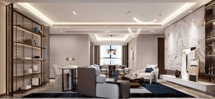 精装交付标准:含中央空调、新风系统、地暖三大件,装标2500元/㎡起