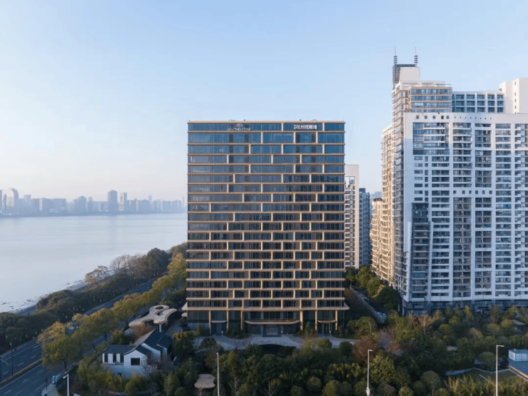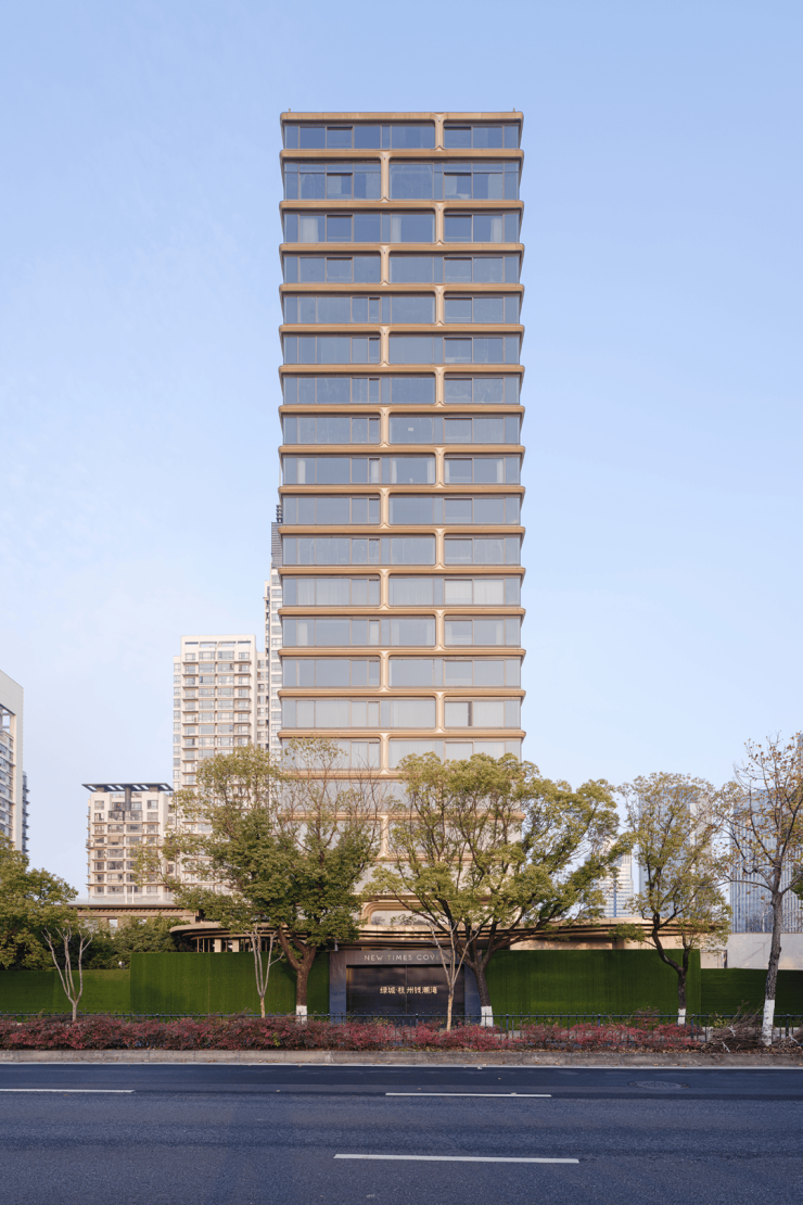 建筑设计:项目由亚洲建筑师协会金奖得主孟凡浩及其团队line+建筑事务所操刀,外立面以金色铝板曲面结合大尺度玻璃幕墙,灵感源自钱塘江“潮涌”。
