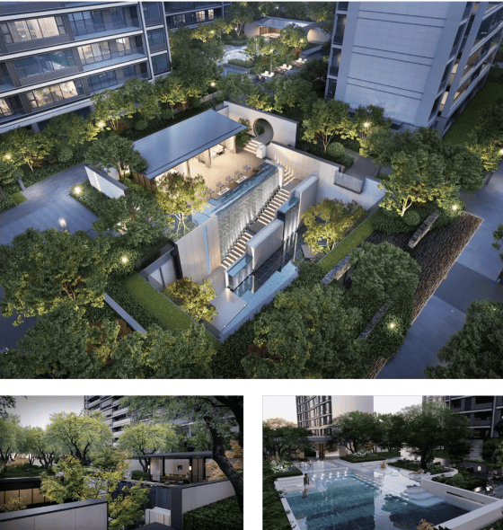 低密宜居:2.2容积率+37%绿化率,12栋建筑呈围合式布局,中央景观轴串联三大主题花园