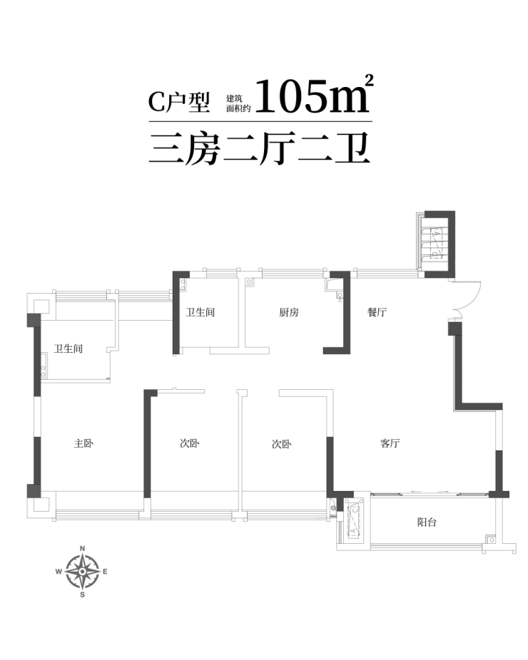 建面约73-105㎡2-3房