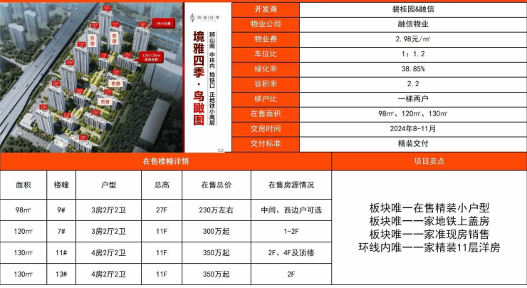 开发商/物业:碧桂园与融信集团联合开发,融信物业(物业费2.98元/㎡/月)