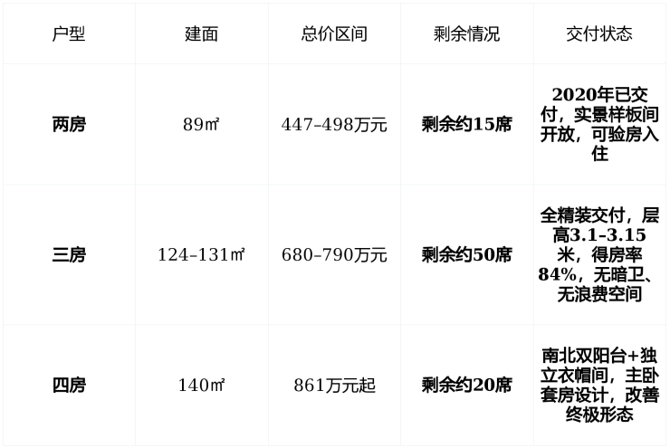 💰 在售情况:现房清盘中,仅余不足百席,得房率84%,精装标准直逼豪宅