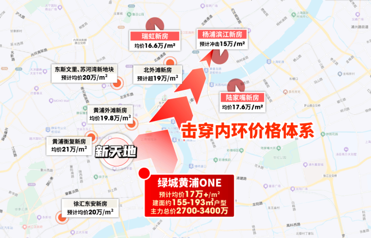 而绿城黄浦ONE处在新天地旁,价格却更为划算,对下游板块形成了“一网打尽”的态势