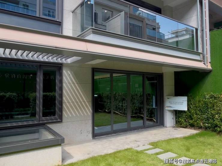 现代江南风格立面,大面积玻璃幕墙+石材干挂,打造“四水归堂”中式园林