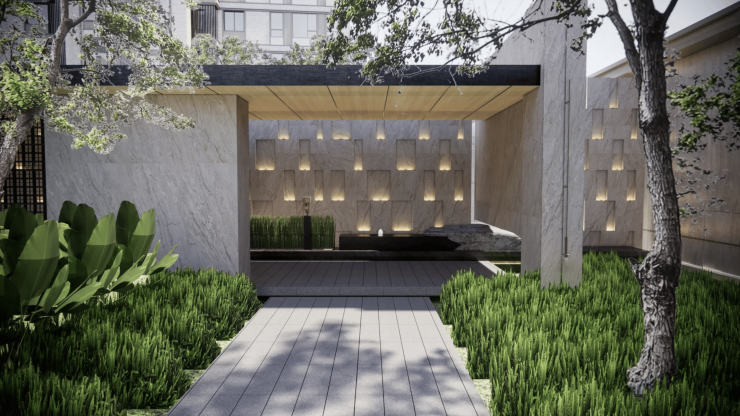 园林设计融合东方美学,连廊、光影、水景营造“生于山林、安于野”的度假氛围