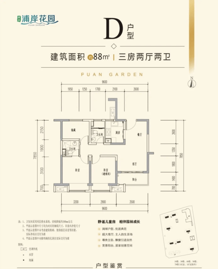 建面约70-88㎡:两室至三室,全明双阳台设计