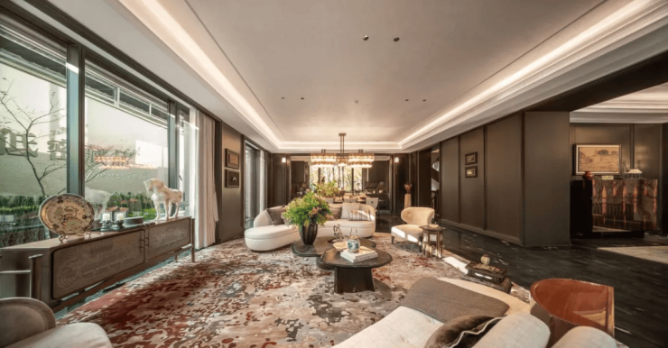 上叠:建面约188-195㎡,配备70㎡“270°环幕式”星空露台,推窗俯瞰西湖山水与高尔夫盛景,层高约3.1-3.2米,空间通透开阔。