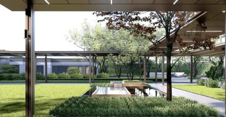 社区景观:内部打造“一轴三环”景观体系,含银杏大道、悬浮茶亭及儿童乐园