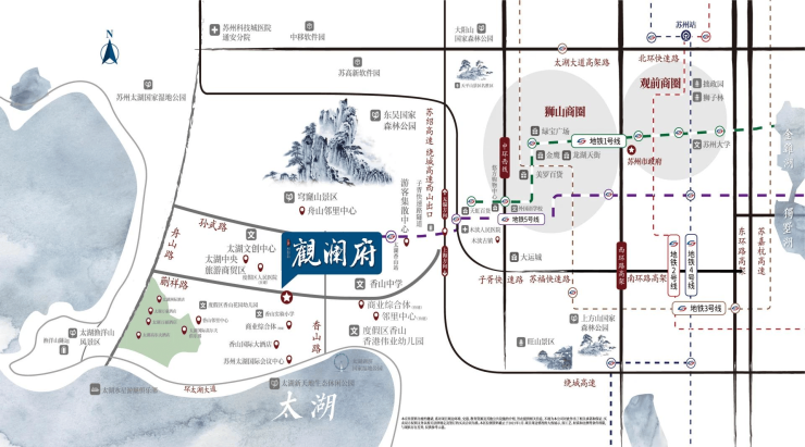 地铁+高速+公交三网融合,通勤半径覆盖苏州全域,是太湖度假区少有的“地铁口现房”。