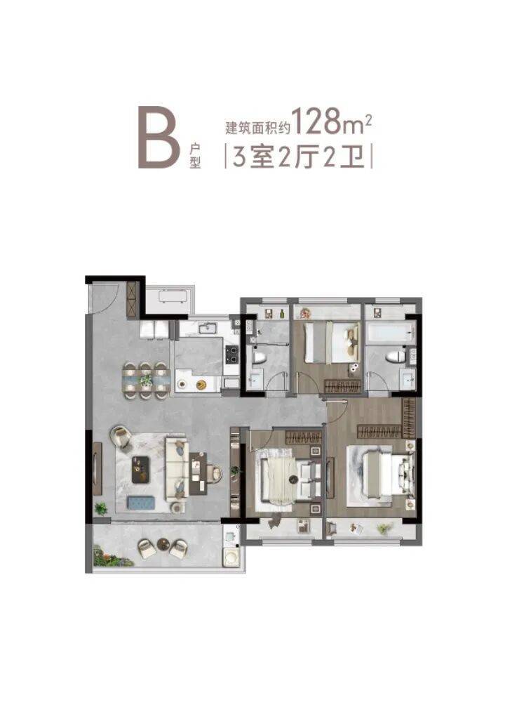 户型面积:约105㎡、约128㎡、约143㎡、约169㎡四个户型。