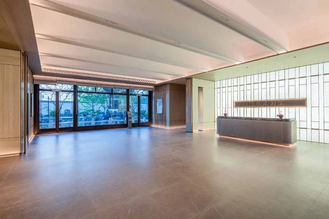 主入口的落客区连接前厅大堂,一入大门,归家的尊崇感油然而生,阳光悄然洒入室内,每一面墙都给人“朝日照绮窗,光风动纨罗”般的舒朗感,大堂暖白色的墙壁映衬着暖光,显得清朗雅致。