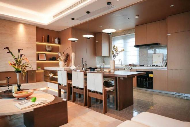 餐厅、厨房融为一体又各自独立,方便烹饪好的美味佳肴端上餐桌与亲友及时分享,进退间从容有序。