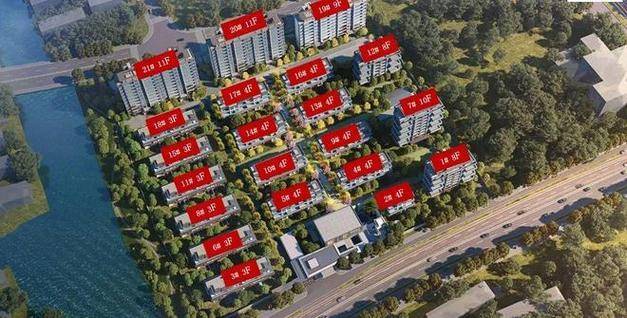 联排别墅:6栋3层,建面约480-550㎡,带80-310㎡花园
