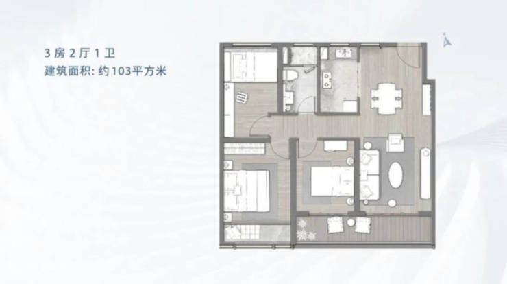 建面 103㎡户型:同样分布于 8#、6#、5#、3# 等楼栋,2 梯 4 户,层高 3.00 米,总楼层 23 - 26F,总价 227.0 - 237.0 万。小三室设计,适合刚需购房者。