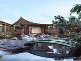 社区内打造“一轴六园”江南园林体系:中央景观轴串联六大主题庭院(归家礼序园、童趣探索园、静谧阅读园等)