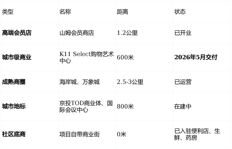 五、商业与生态:五大公园环伺,K11+山姆双核驱动