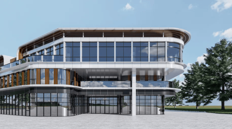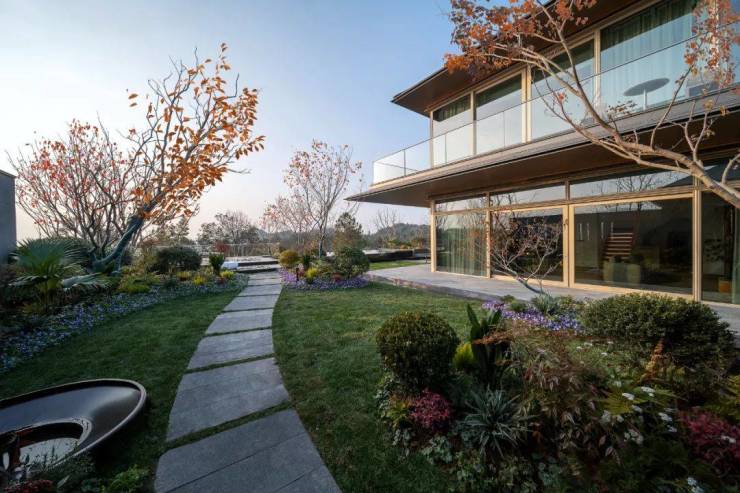 采用270°全景露台、14米面宽全屏玻璃幕墙,部分户型配备75-400㎡私家庭院