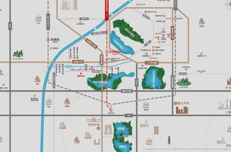 时代春语花庭:4009983631项目区域图:项目位于常熟尚湖镇,往北17公里张家港,往南13公里苏州北桥,往西17公里无锡东站,往东太仓放向,处于四市交汇处。