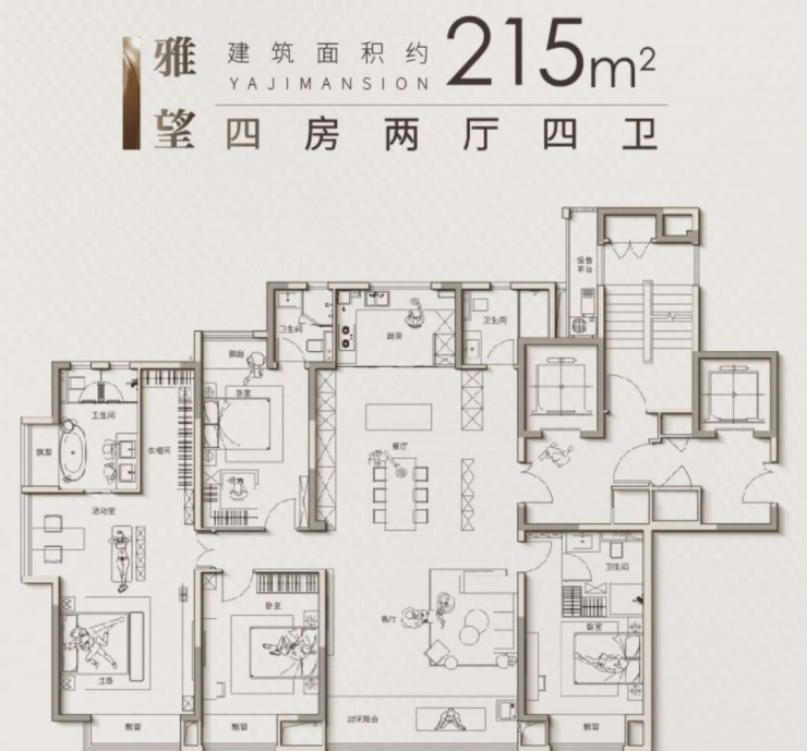 215㎡四室两厅四卫四开间朝南、主卧45㎡顶层大平层、私享露台待定