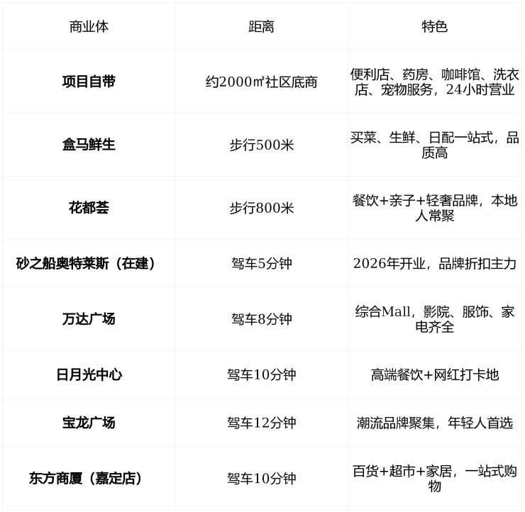 🛍️ 商业配套:1.5公里生活圈,烟火气与高端感并存