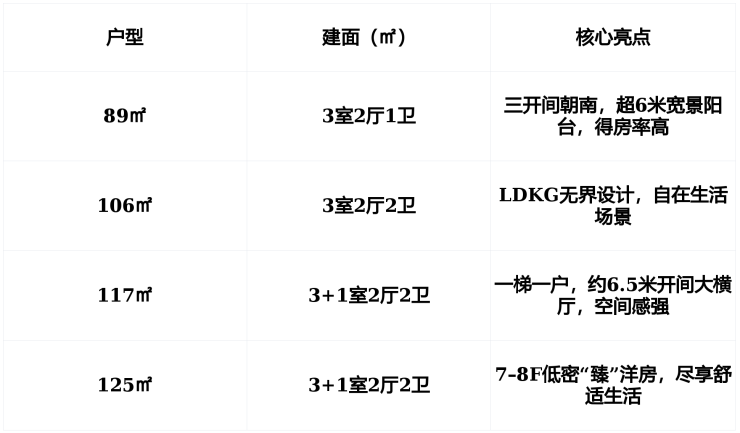 3. 主力户型实用,覆盖全生命周期需求
